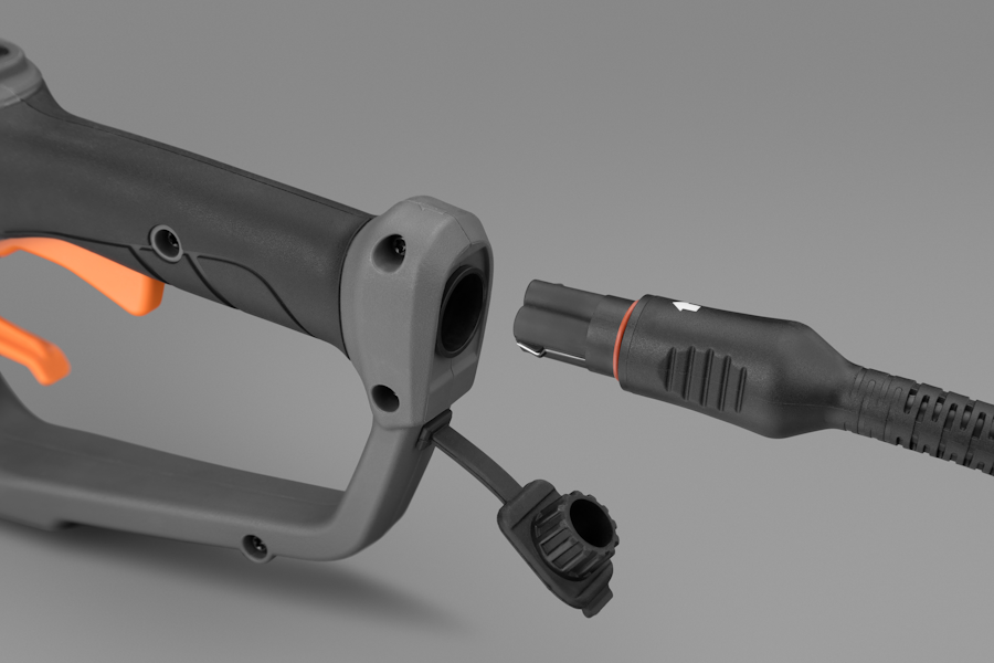 Ножницы-кусторез подключаются к ранцевым аккумуляторам системы MAXI CONNECT высокой емкости, которые предполагают соединение аккумулятора и инструмента посредством провода. Однако, можно использовать и менее емкие батареи системы STANDARD CONNECT - для них потребуется ранцевая подвеска HA6080. Время автономной работы: