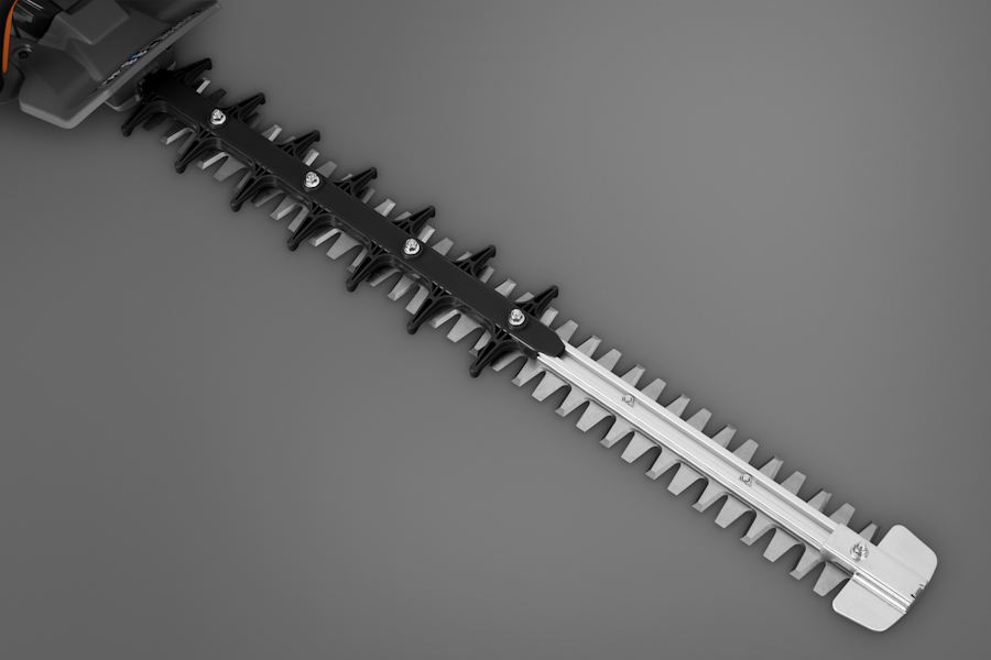 Режущие зубья, расположенные с двух сторон режущего полотна, позволяют работать в двух направлениях, что обеспечивает высокую производительность. Стальные лезвия толщиной 2,5 мм обработаны лазером для высокого качества среза и скорейшего заживления обрезанных ветвей без ущерба внешнему виду декоративных кустарников. На конце режущего полотна имеется защита для предотвращения повреждений.