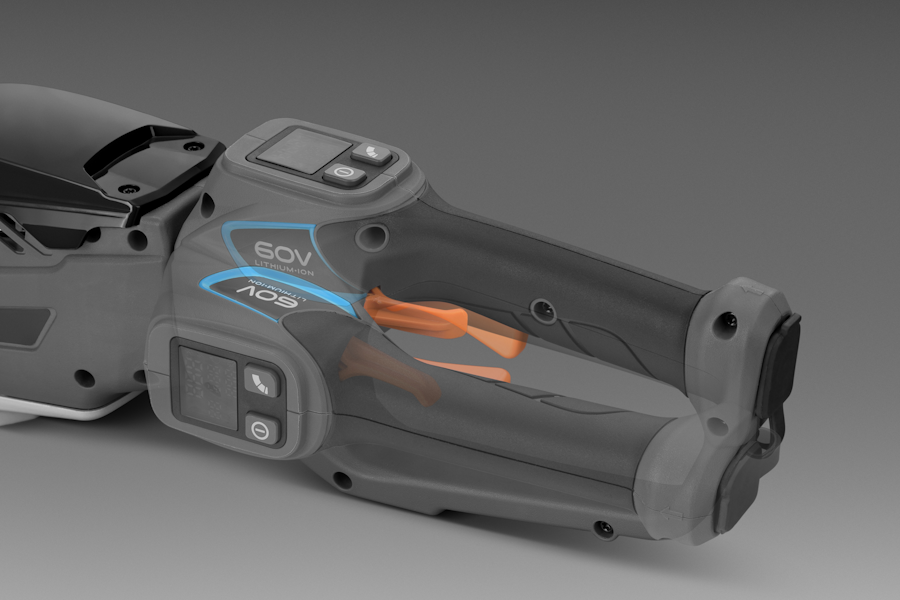 Три режима вращения двигателя: 3200/3600/4000 об/мин – позволяют установить оптимальную производительность: сэкономить заряд батареи в случае отсутствия необходимости использования полных оборотов или задействовать всю доступную мощность инструмента в случае обрезки наиболее плотных и густых ветвей.