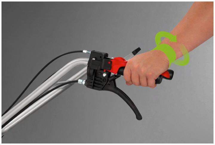 На подметальную машину устанавливаются эргономичные ручка сцепления и акселератор от мирового лидера - итальянской компании Start. Ручка сцепления имеет изменяемое плечо и при нажатии нагрузка на запястье отсутствует. Рукоятки выполнены из специального сплава, который не требует подогрева и работать с подметальной машиной комфортно в любую погоду.