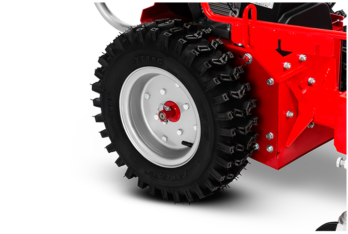 Каждое колесо X-TRAC имеет размер 42х12 см и выдерживает 200 кг нагрузки. Такие колеса превосходно подходят для подметальной машины при работе зимой, где требуется хорошее сцепление с со снегом и льдом, благодаря уникальному направленному и глубокому рисунку протектора. Диски на колесах являются стальными цельноштампованными, колеса устанавливаются на подшипниках.