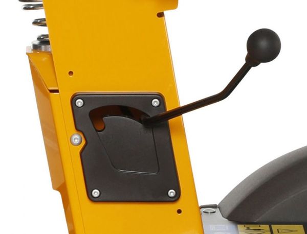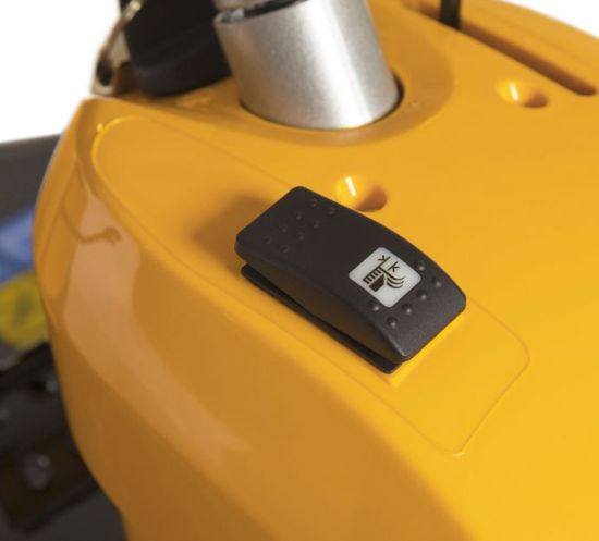 Рычаг используется для включения и отключения вращения ножей, располагается сбоку и хорошо доступен с сиденья.