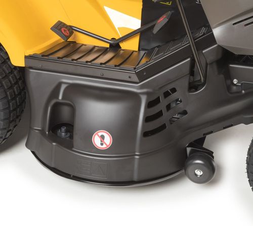 Режущий механизм шириной 102 см с двумя синхронизированными ножами для эффективного сбора скошенной травы. Колеса, предотвращающие повреждение дерна, помогают режущему механизму эффективно косить траву даже на неровных поверхностях.