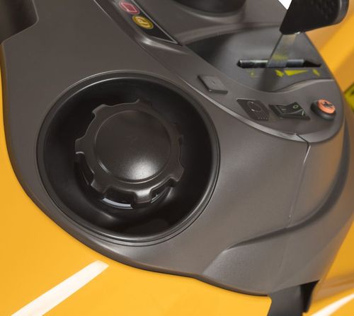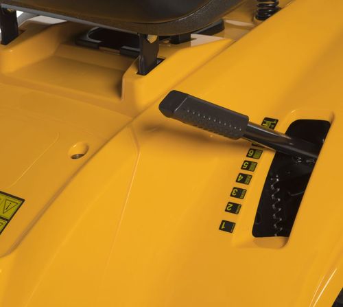 Высота режущего механизма удобно регулируется с помощью рычага, расположенного рядом с сиденьем. Предусмотрено семь фиксированных позиций в диапазоне от 25 до 80 мм.
