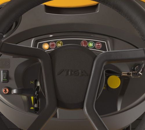 Садовый трактор Stiga Estate 5102 HW создан для обработки больших участков площадью до 6000 кв.м. Оборудован мощным двухцилиндровым двигателем Kawasaki объемом 603 куб.см, гидростатической передачей, режущей декой с двойным лезвием шириной 102 см и колесами, которые не повреждают газон. Высоту стрижки можно регулировать, выбирая из 7 позиций в диапазоне от 25 до 80 мм. Траву можно собирать в специальный большой травосборник, объемом 290 литров, или, используя функцию Multiclip, закрыть заслонку и сразу разбрасывать измельченную траву на газон.