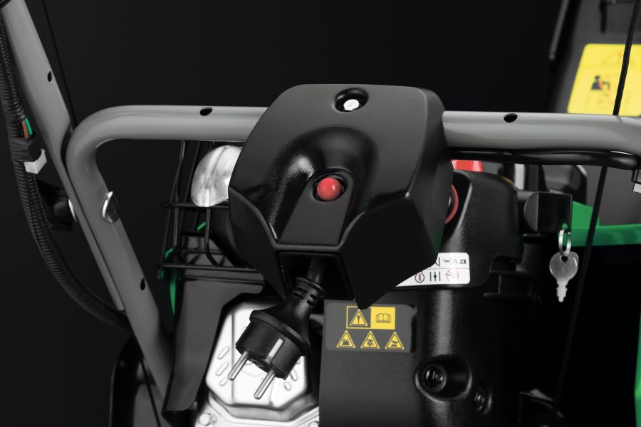 Клавиши электрического управления поворотом дефлектора удобно расположены под рукой оператора. Это позволяет направлять выбрасываемый снег в нужном направлении, не отвлекаясь от управления машиной. Диапазон регулировки - 200°. В вертикальной плоскости дефлектор регулируется рукояткой, с помощью которой устанавливается оптимальный угол выброса снега.