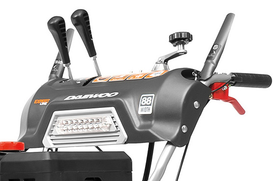 Яркая LED фара обеспечивает освещение рабочей зоны перед снегоуборщиком, помогая работать в темное время суток.