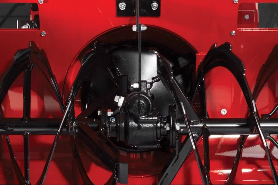 На модели установлена японская гидростатическая трансмиссия с бесступенчатой коробкой передач. Она обеспечивает плавное изменение скорости и направления движения. Трансмиссия разработана специально для снегоуборочных машин.
