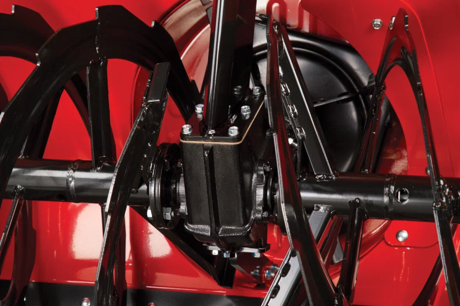 Оси червячного редуктора установлены в прочном шариковом подшипнике. Редуктор имеет цельный чугунный корпус. Одним из инновационных решений производителя стало применение не традиционной консистентной смазки, а трансмиссионного масла 80W90, что дает владельцу существенную экономию при обслуживании. Срок службы – до 10 000 моточасов.