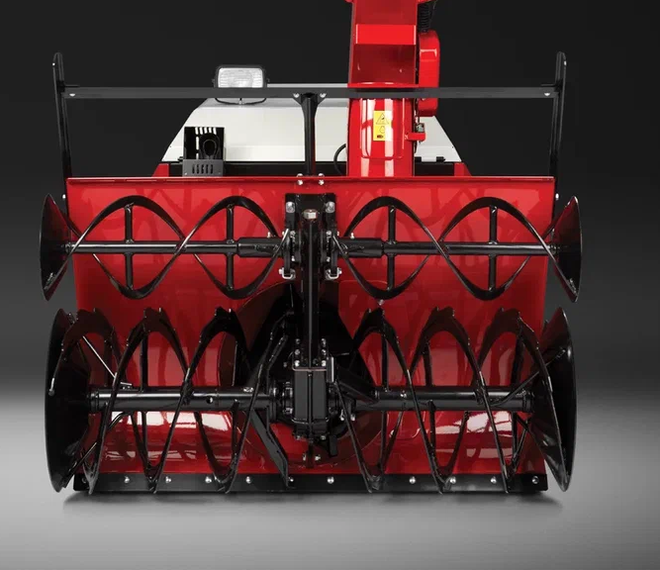 Снегоуборщики оборудованы двойным агрессивным шнеком и профессиональным редуктором с цепной передачей. Это позволяет убирать большие объемы обычного и тяжелого, слежавшегося снега высотой до 1 метра.
