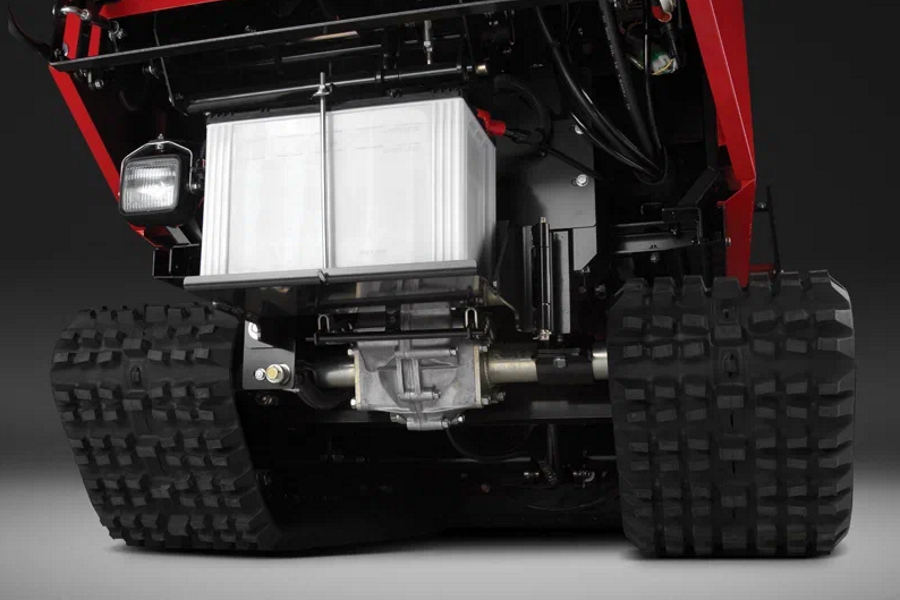 Использование гусениц гарантирует высокую проходимость на всех типах снежного покрова, вне зависимости от его глубины. Гусеничный ход снегоуборщика эффективен при уборке снега на неровных поверхностях и уклонах, обеспечивает полную управляемость машины. Гусеницы имеют ширину 30 см.