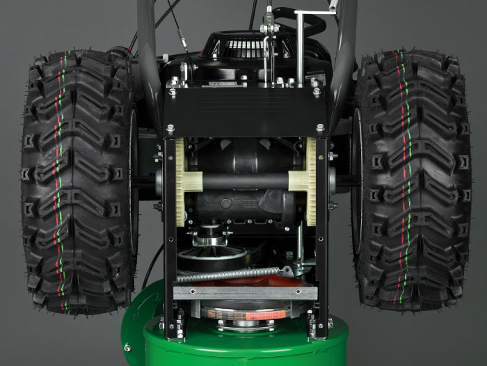 Оси червячного редуктора установлены в прочном шарикоподшипнике. Редуктор с передаточным отношением 1:10,5 имеет цельный чугунный корпус, усиленный стальными пластинами. Одним из инновационных решений производителя стало применение не традиционной консистентной смазки, а трансмиссионного масла 80W90, что дает владельцу существенную экономию при обслуживании.