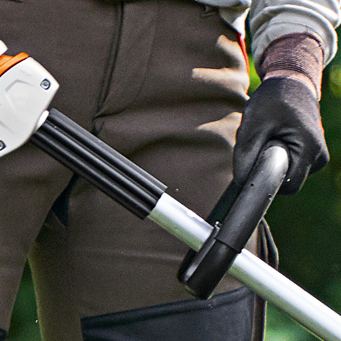Круговая рукоятка с мягким покрытием идеальна для работы в труднодоступных местах, к примеру, под кустами, вокруг деревьев или вдоль живых изгородей.
