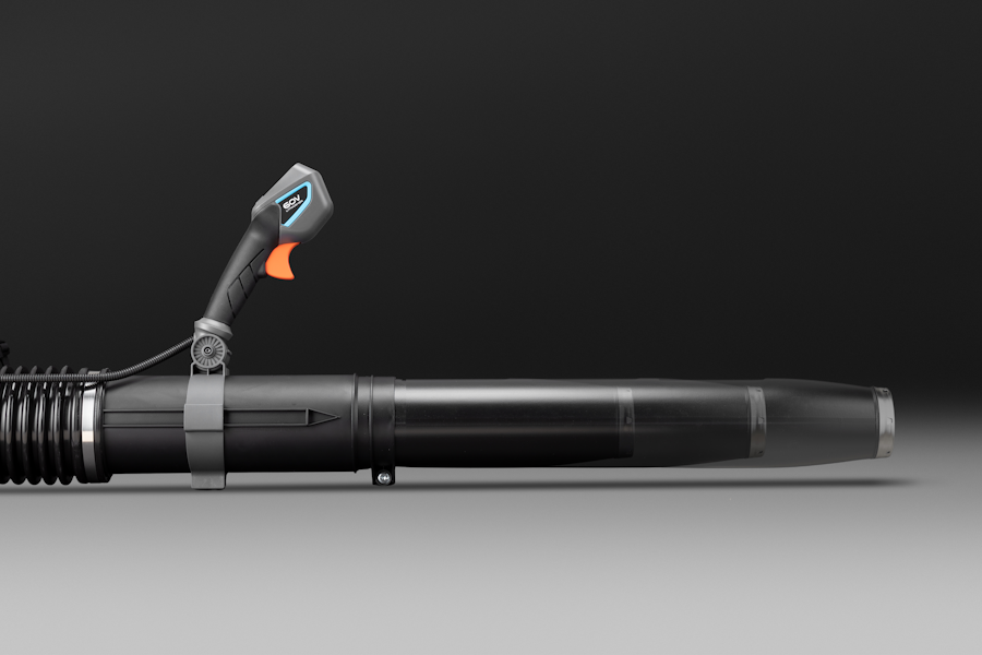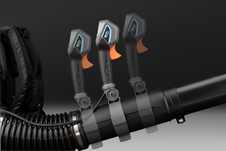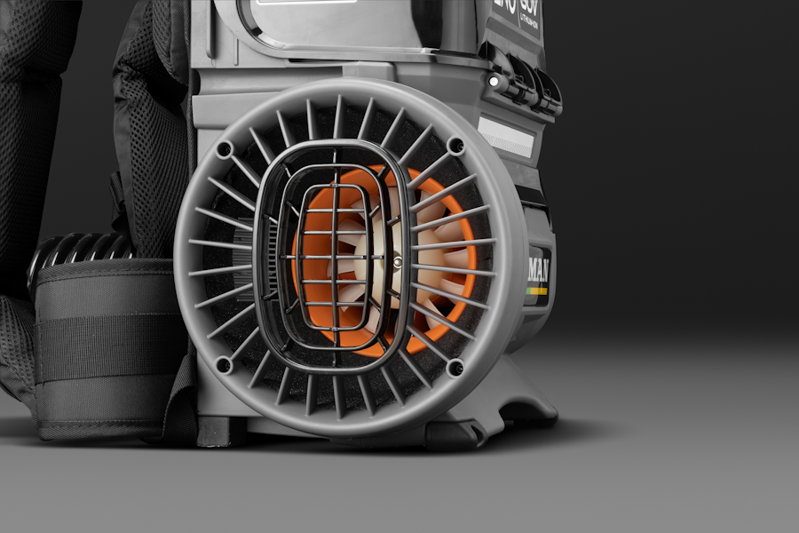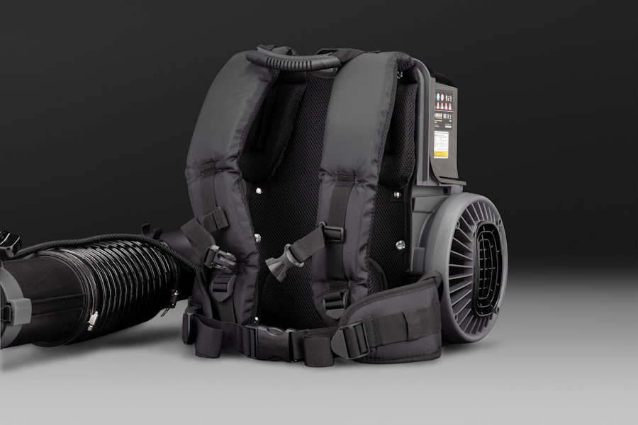 Подвеска в виде рюкзака имеет мягкие широкие лямки, подушку под спину с сеткой для вентиляции спины. Она обеспечивает четырехточечную фиксацию воздуходувки на спине оператора, при этом обеспечивает свободу движений, не сковывая их.