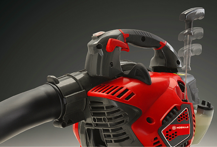В воздуходувке МОБИЛ К применяется 2-х точечная антивибрационная система со стальными пружинами, и действующими как антивибрационными элементами для уменьшения передачи вибраций, вызванных двигателем. Поэтому ручка имеют чрезвычайно низкую вибрацию и воздуходувкой легко и комфортно работать.