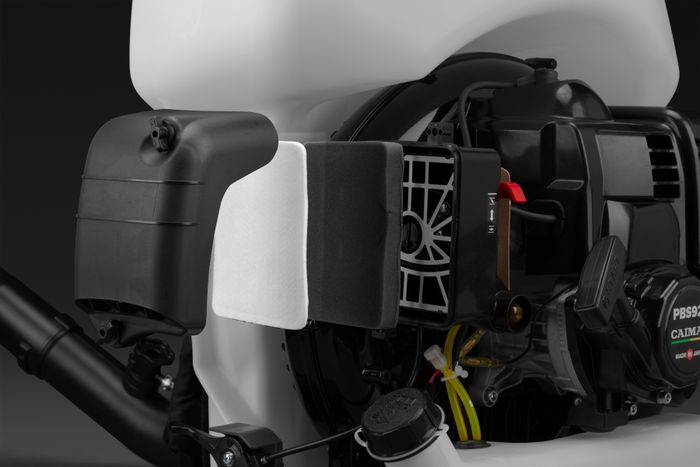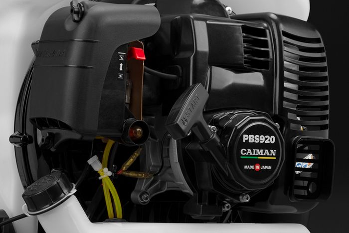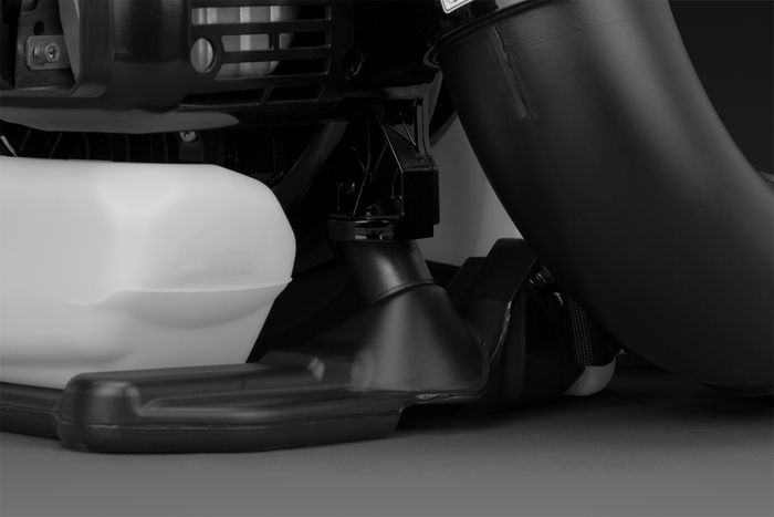 Мощный двухтактный мотор с двумя поршневыми кольцами, электронной системой зажигания, хромированным цилиндром. Увеличенные ребра охлаждения на цилиндре обеспечивают лучший отвод лишнего тепла, что позволяет эффективно использовать воздуходувку в коммерческих целях. Система рециркуляции выхлопных газов повышает КПД двигателя и снижает расход топлива на 20%. Лазерная проточка на стенках поршня улучшает смазку и позволяет значительно продлить срок службы цилиндропоршневой группы.